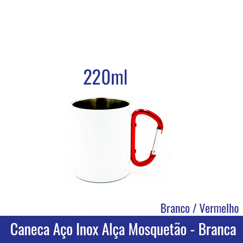 Caneca AÇO INOX 220 ML Alca Mosquetão – BRANCA (alça vermelha) – Ref. 92320